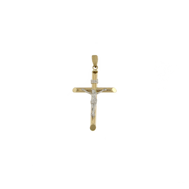 Gładki krzyżyk z wizerunkiem z białego złota 1.17g