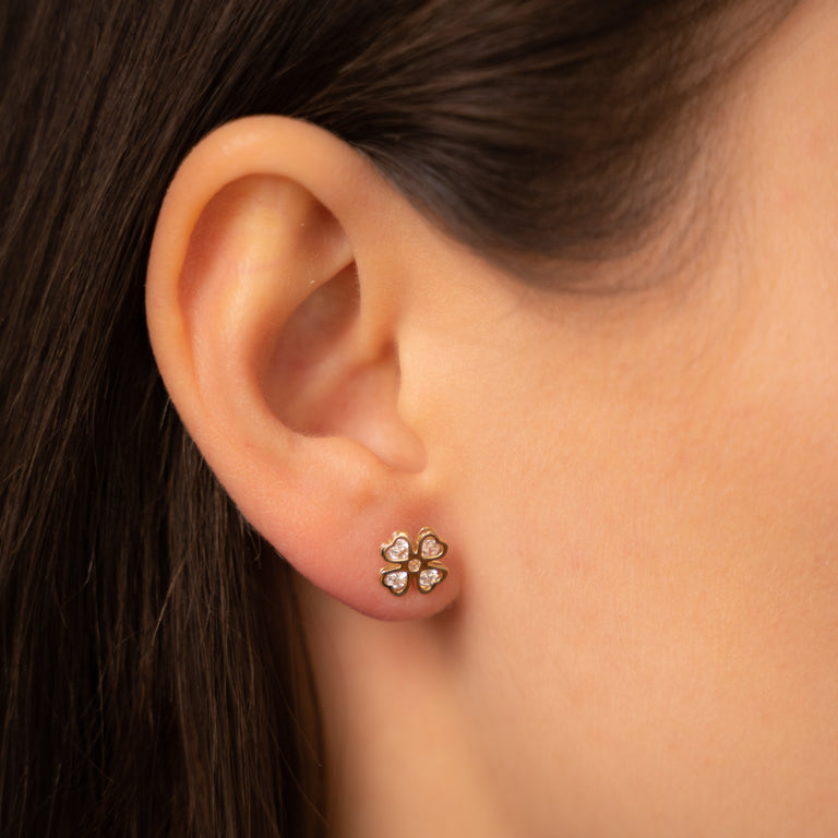 Kolczyki sztyfty koniczynka z cyrkoniami 1.45g