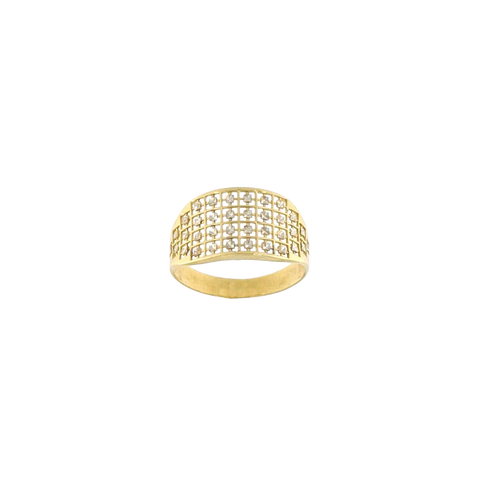 Pierścionek wykonany w kształcie sygnetu z ażurowym wykończeniem. Biżuteria wykonana jest ze złota próby 585.