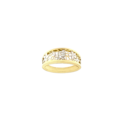 Pierścionek wykonany w kształcie sygnetu z ażurowym wykończeniem. Biżuteria wykonana jest ze złota próby 585.