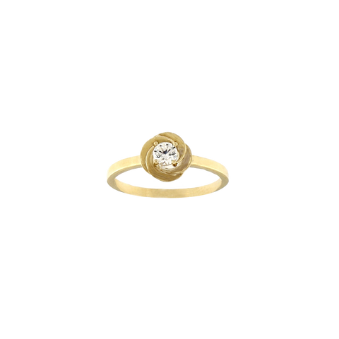 Pierścionek z żółtego złota z motywem kwiatu z cyrkonią. Biżuteria wykonana ze złota próby 585.
