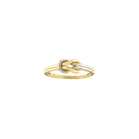 Pierścionek z żółtego i białego złota z motywem nieskończoności. Biżuteria wykonana ze złota próby 585.