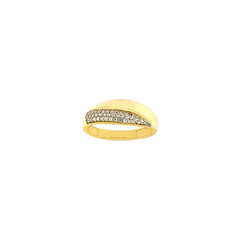 Pierścionek wykonany w kształcie sygnetu. Częściowo ozdobiony cyrkoniami. Biżuteria wykonana jest ze złota próby 585.