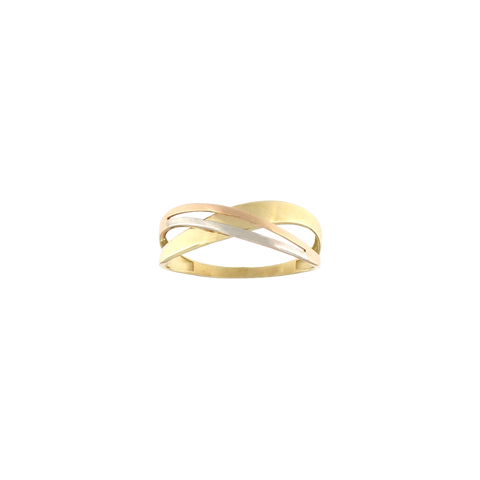 Pierścionek złoty z elementami białego i różowego złota. Biżuteria wykonana ze złota próby 585.